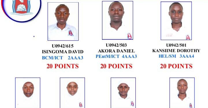 The three candidates include; Isingoma David who scored 20 points in BCM/ICT, Akora Daniel in PEntM/ICT,and Kansiime Dorothy in HEL/SM.