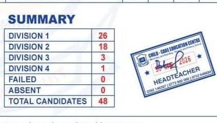 2025 PLE RESULTS : Child Care Education Center, located in Namayumba Subcounty, Wakiso District emerged as a beacon of academic excellence following its impressive performance in the 2025 Primary Leaving Examinations (PLE). The results, released on Friday, place the school among the top-performing education centers in the district, earning it widespread praise from parents, educators, and the community at large.