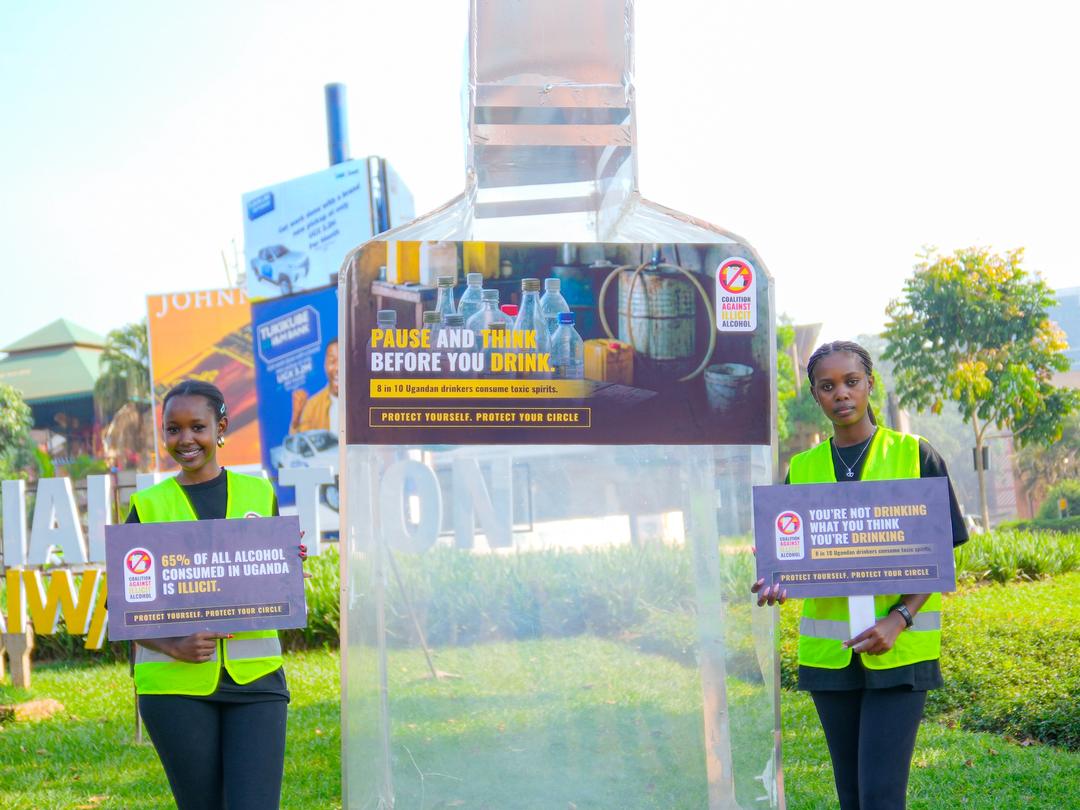 The Campaign was officially launched, through high-impact street activations featuring a giant bottle installation at Garden City and Jinja Road roundabouts. The installation provides a powerful visual reminder of the hidden dangers of illicit alcohol at a time when consumption typically rises, urging the public to pause, question, and make better, safer choices during the festive period.