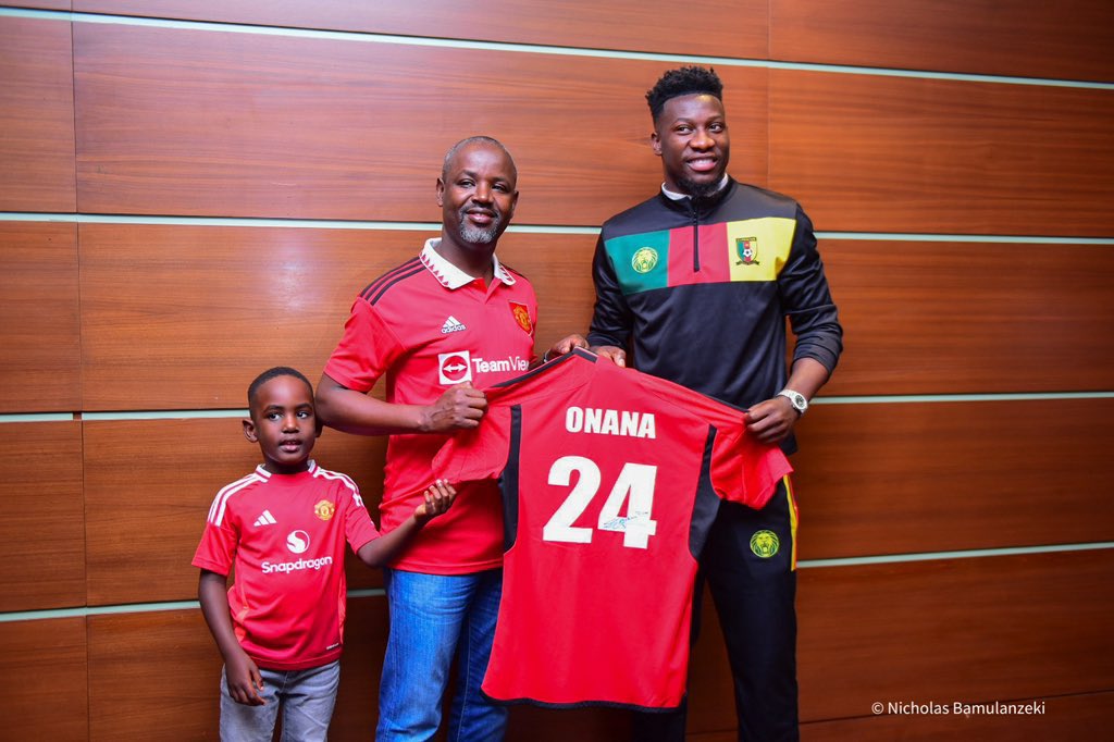 The deputy speaker, a passionate supporter of the English club, presented the Cameroonian shot-stopper with a beautifully crafted African accolade made in form of cow horns as a gesture of friendship and admiration. In return, Onana graciously signed autographs on their jerseys, much to the delight of Tayebwa and his son.