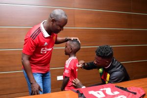 The meeting between Tayebwa and Onana was a lighthearted affair, attended by Tayebwa’s son, both sporting Manchester United jerseys.