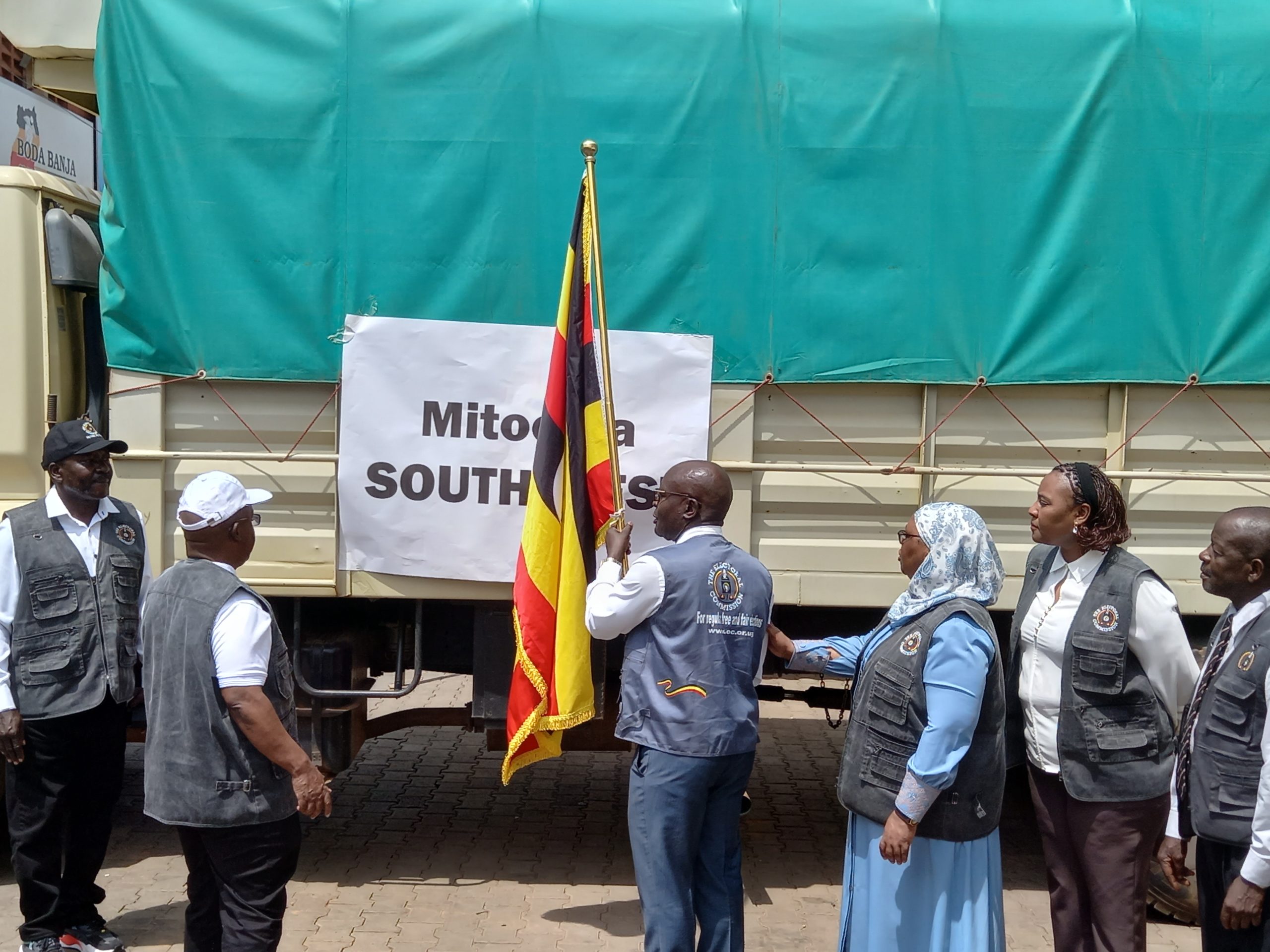 The brief ceremony was held at the EC warehouses located in the Ntinda Industrial Complex, Nakawa Division, and was attended by senior EC officials, security personnel, and members of the media.