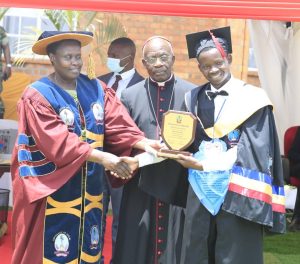 During the ceremony, Baingana Tinka, who got a 4.50 CGPA in the Master of Arts in Education, and Stella Nakayiza, ( 4.70 CGPA) in the Postgraduate Diploma in Counseling Psychology, were recognised for their excellent performance.