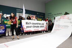 Speaking after the action, other climate activists said frontline countries were being pushed to the brink of collapse due to rich, polluting countries’ continued inaction and refusal to provide grant-based public climate finance.