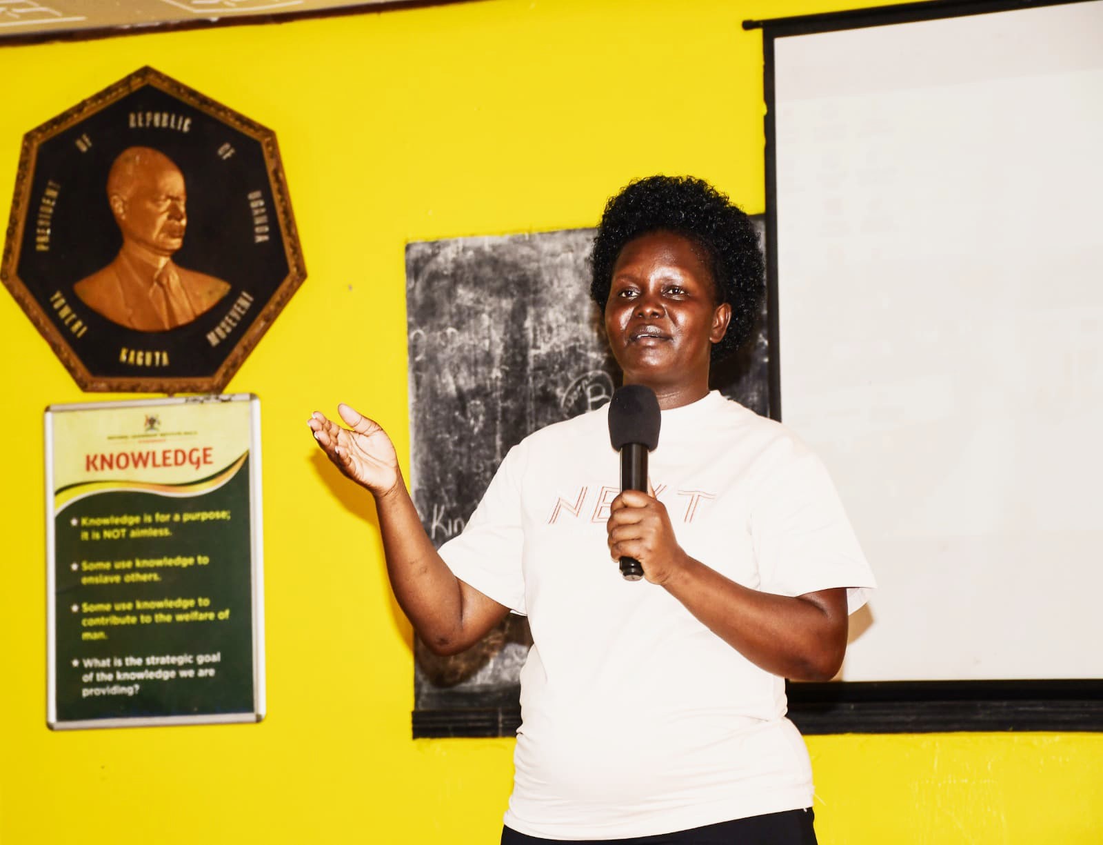 She encouraged the youth to grow values such as love, sacrifice, service, pride, and loyalty to Uganda, and praised the achievements of the current government.
