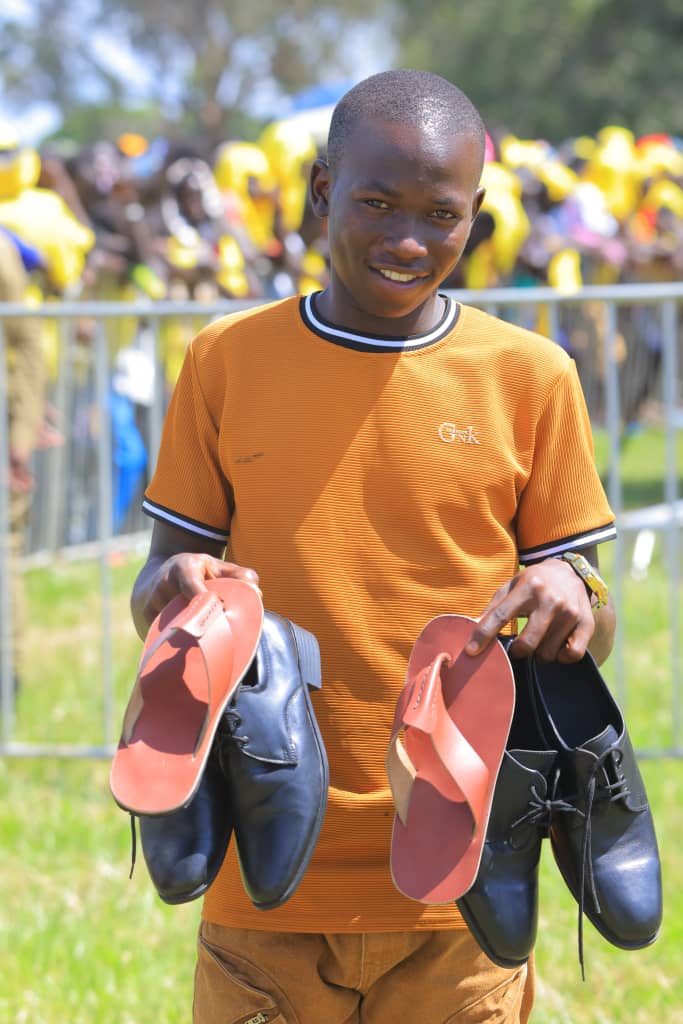 Pader District, Uganda – An 18-year-old youth from Pader District, Okol Jonathan, could not hide his excitement after selling a pair of handmade shoes to President Yoweri Kaguta Museveni for UGX 500,000 during a campaign rally in Pajule Town Council.
