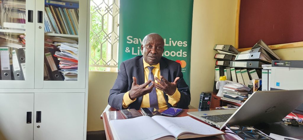 Dr. Byamukama Agaba, the district health officer for Nakasongola during a media interview at Nakasongola district headquarters