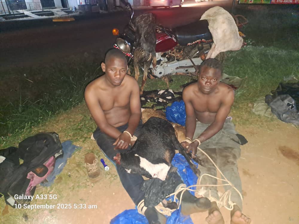 Kakiri Police Station in Wakiso district has apprehended two individuals in relation to accusations of cattle theft that occurred on September 10, 2025, at 2 am in Bembe Nansiiti village, located in Namayumba subcounty.