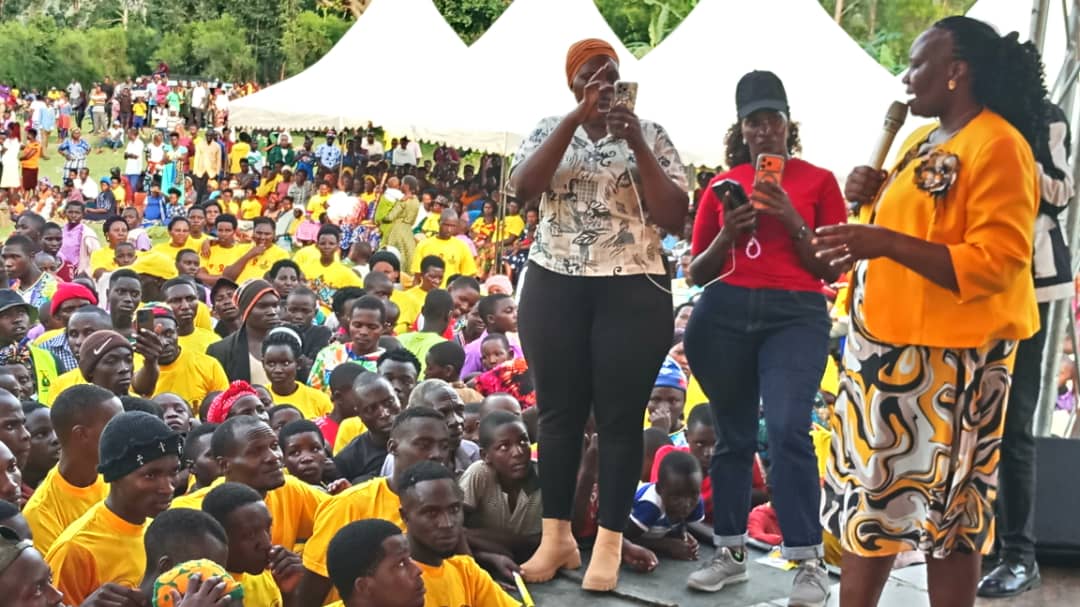 The Presidential Advisor was welcomed by enthusiastic NRM supporters wearing yellow T-shirts upon her arrival at the venue. She returned the greeting by raising both arms and giving a thumbs-up in the shape of the NRM symbol.