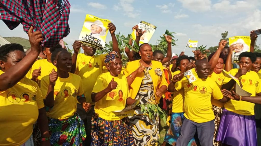 Residents, wearing yellow T-shirts bearing pictures of President Museveni, the Senior Presidential Advisor, and the Coordinator of Operation Wealth Creation (OWC), Salim Saleh, as well as Rugambwa herself, pledged to vote for Museveni.